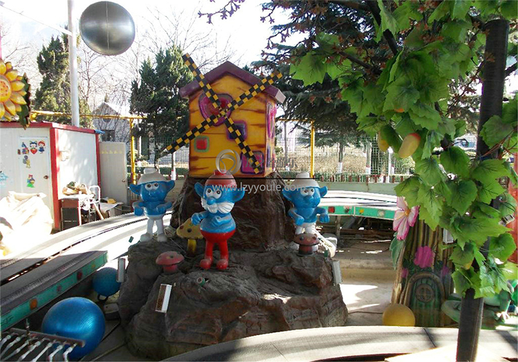 精靈王國作為游樂園設備軌道類產品,精靈王國采用軌道環軌式游樂方式,一群可愛乖巧的藍精靈、一個簡易溫暖的山頂之家、一個呆萌友好的青蛙、軌道上運行的各種卡通造型的小火車,當小朋友們乘坐到軌道火車中一圈又一圈的在藍色精靈王國中來回穿梭,仿佛與藍色精靈一起玩耍般的身臨其境。精靈王國作為游樂園設備還可根據不同大小的場地來定制軌道的長度與軌道和中央內容物的豐富度,當然作為游樂園設備設備的互動性也是必不可少的,精靈王國中當你座艙上的激光槍射擊小動物時它們會噴出水花,樂趣無窮。