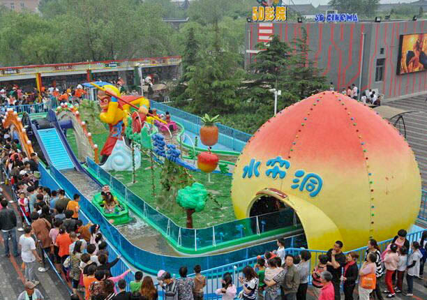 花果山漂流,有著悟空巨型造型和各類造型逼真的大桃和各種互動的卡通造型,是公園當之無愧的主打兒童游樂備。花果山漂流游樂設備為了照顧不同客戶群體的需求特開發(fā)了滑坡和平行的兩種不同的型號,中間的水簾洞和小拱橋組成的滑坡增加了花果山漂流設備的趣味性。炫彩的顏色搭配,國標的鋼材配置,九層厚的玻璃鋼鑄就了許昌龍之盈游樂設備有限公司的“金剛”品質,花果山漂流具有極其吸引眼球的西游記造型和小朋友所喜愛的各種動物、植物。現在的花果山漂流從最早的圓形艙已經改為方形艙,互動性更強。